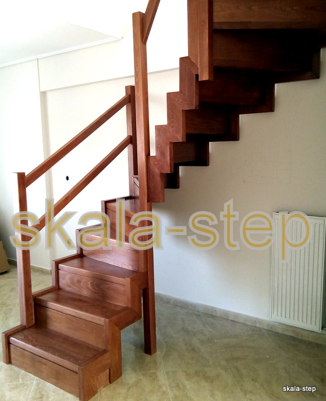 Ξύλινη εναέρια σκάλα Π με σκοτία χωρίς βαθμιδοφόρους!