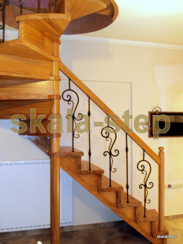 Σύνθετη σκάλα από υψηλής ποιότητας σκληρή ξυλεία Αφρικάνικη σε φυσική απόχρωση με βερνίκια 2 συστατικών νερού,κατασκευασμένη κλειστή με ρίχτι και σιδερένιο κάγκελο.με κορμό μασίφ και κουπαστή μασίφ.